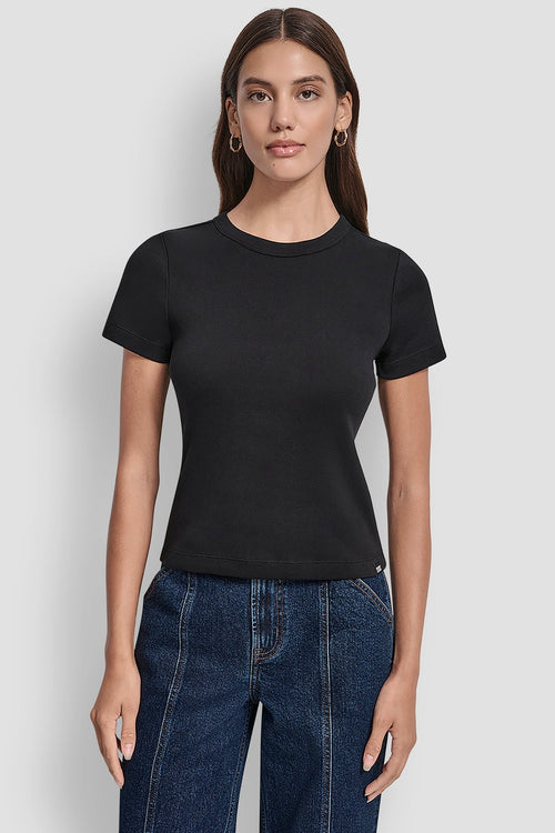 LONG SLEEVE DKNY BISTRO CONVERSATIONAL FRENCH TERRY SHIRT -